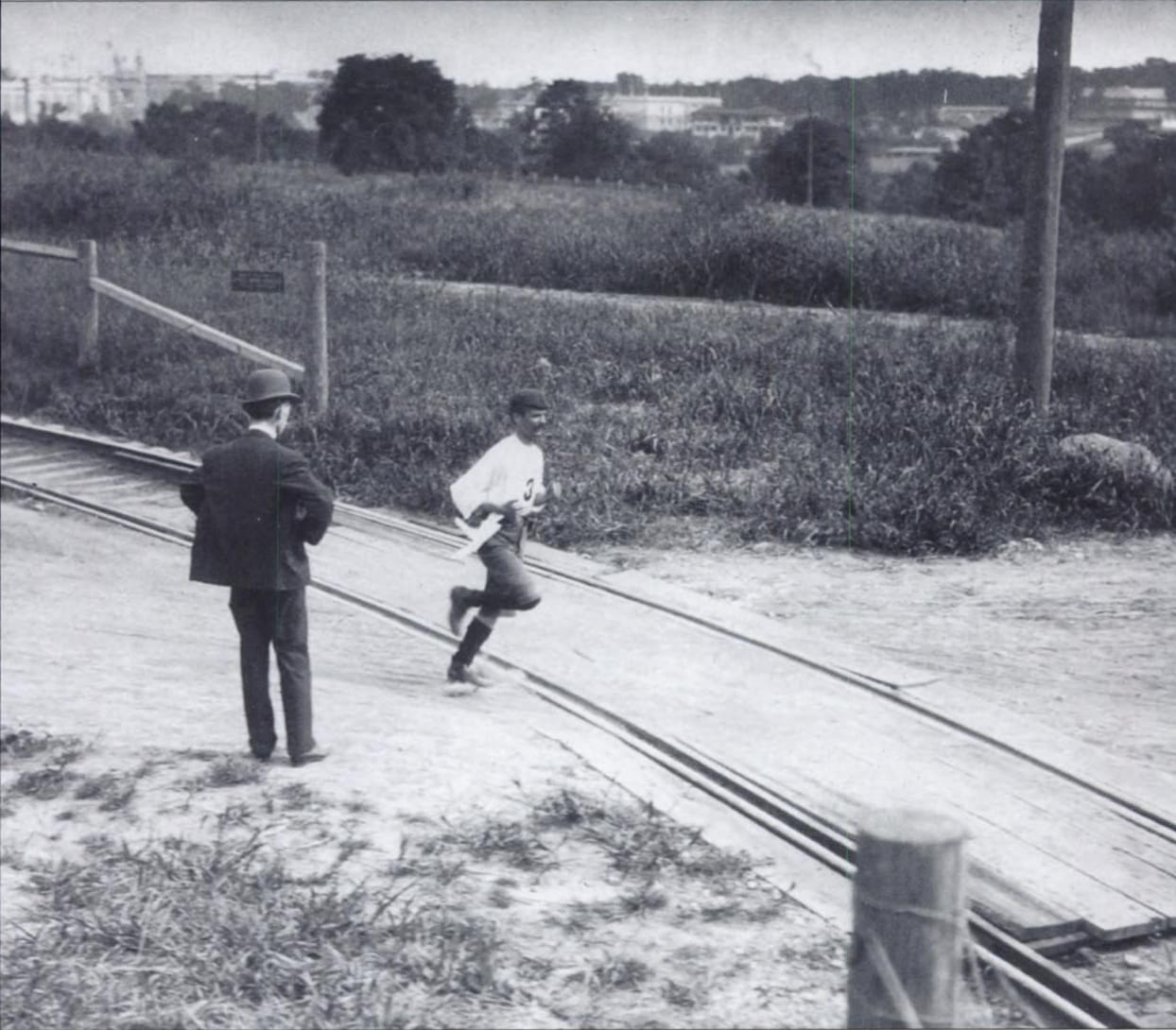 Runners would share the road with automobiles, horse-drawn wagons, railroad crossings, and trolley cars, dodging all of these while running a competitive marathon in ninety-degree heat without water.